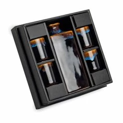 This elegant sake set has a two-textured finish, with a metallic and matt black pattern. The flask can hold heated sake (known as ‘atsukan’), though it’s traditional to decant sake into the flask, and serve it at room temperature. The perfect gift for sake-lovers, and a great way to end a sashimi feast.