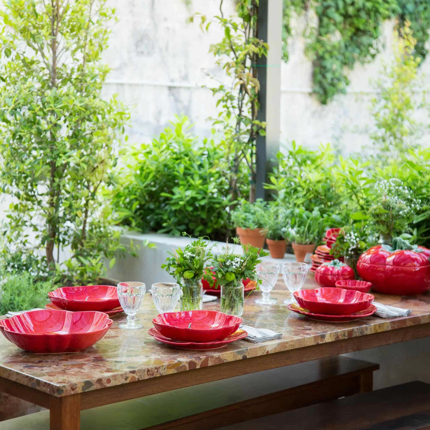 Bordallo Pinheiro’s tomato pasta plate is a colourful way to serve your favourite pomodoro dishes. Made from earthenware, this vibrant red plate has a delicate frilly edge and green leaf-inspired design. Fill this bowl with a simple San Marzano tomato spaghetti, rich beef ragu or beetroot ravioli.