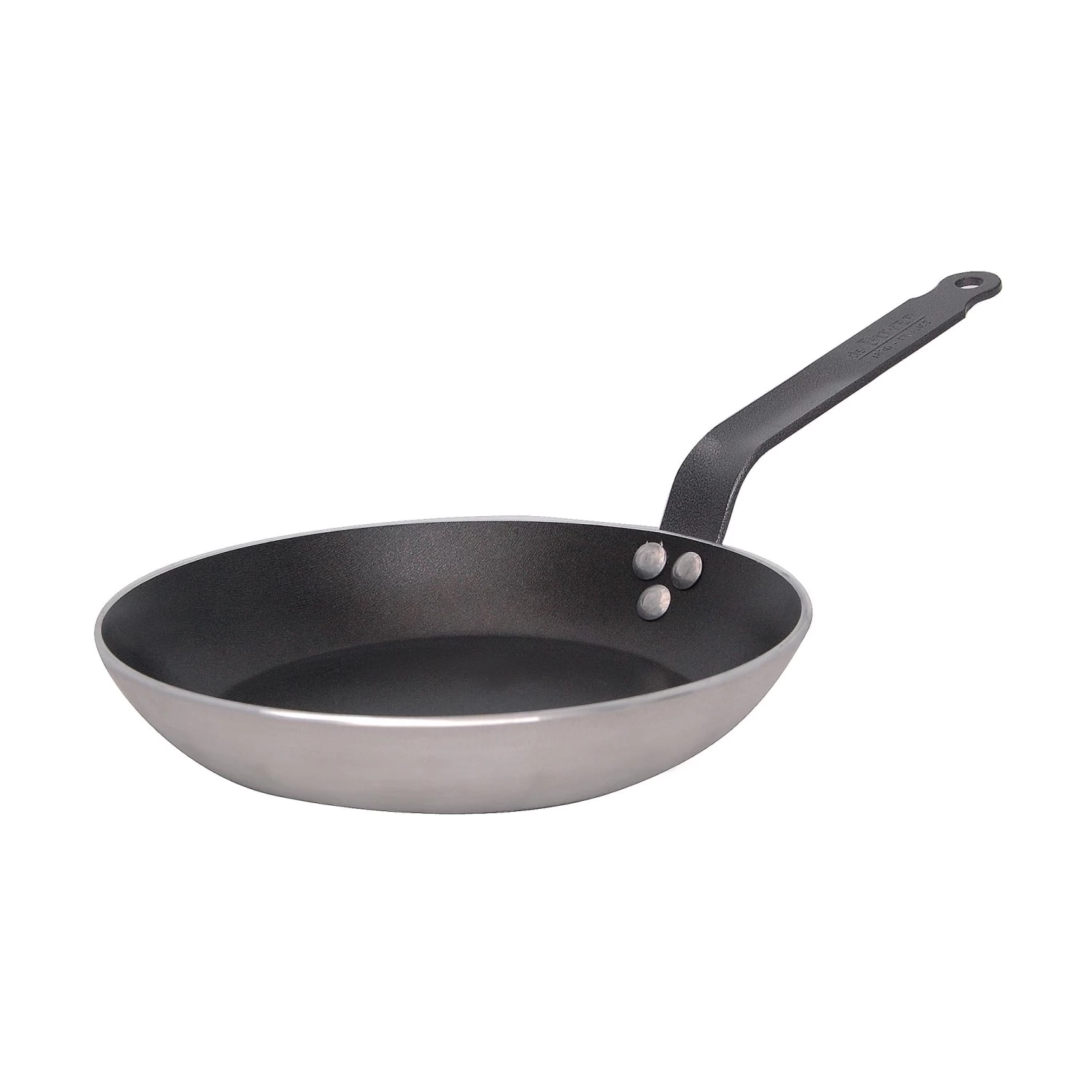 The frying pan has a ‘lyonnaise’ profile – this means there are no sharp, straight edges around the rim, so food slides easily from pan to plate. The inside of the aluminium pan is coated with 5 layers of PFAO-free, PTFE non-stick Choc 5 – De Buyer’s most durable non-stick coating designed for heavy professional use. To keep the non-stick coating in top condition for many years to come, avoid using metal utensils with the pan.