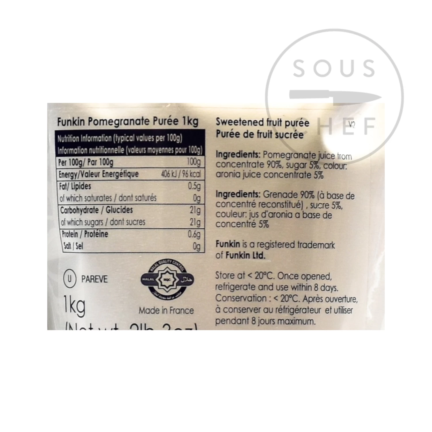 This natural pomegranate puree makes a great mixer for cocktails. Try using this puree in a pomegrante martini for a touch of that sweet, slightly bitter pomegranate flavour. Pomegrante puree is also a useful ingredient in pâtisserie recipes, from pâtes de fruits to jams and jelly.