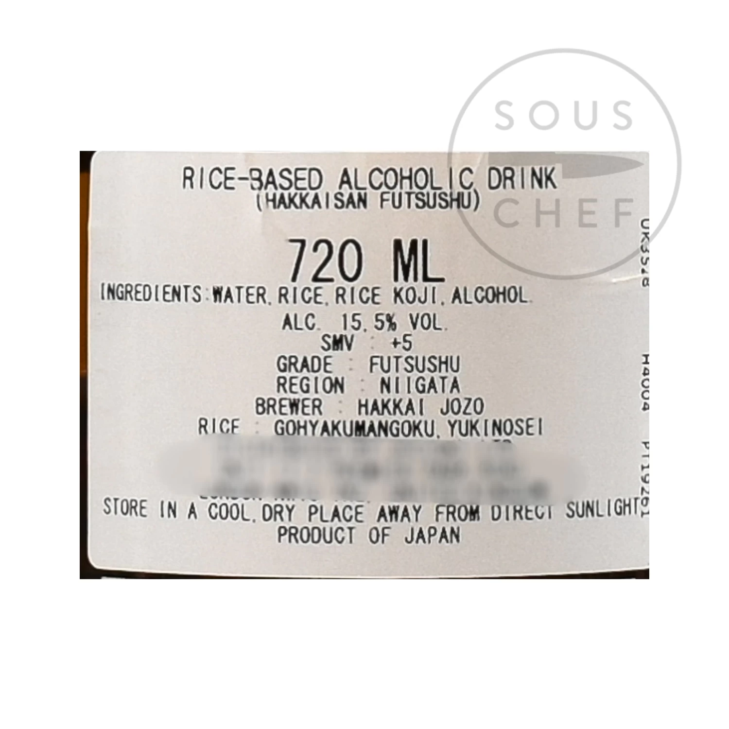 Ingredients: water, rice, rice koji, alcohol.