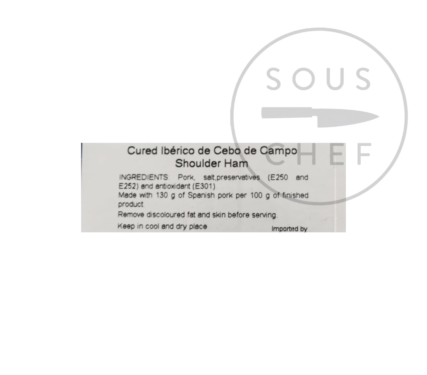 Ingredients: Pork, salt, preservatives (E250 and E252), antioxidant (E301)