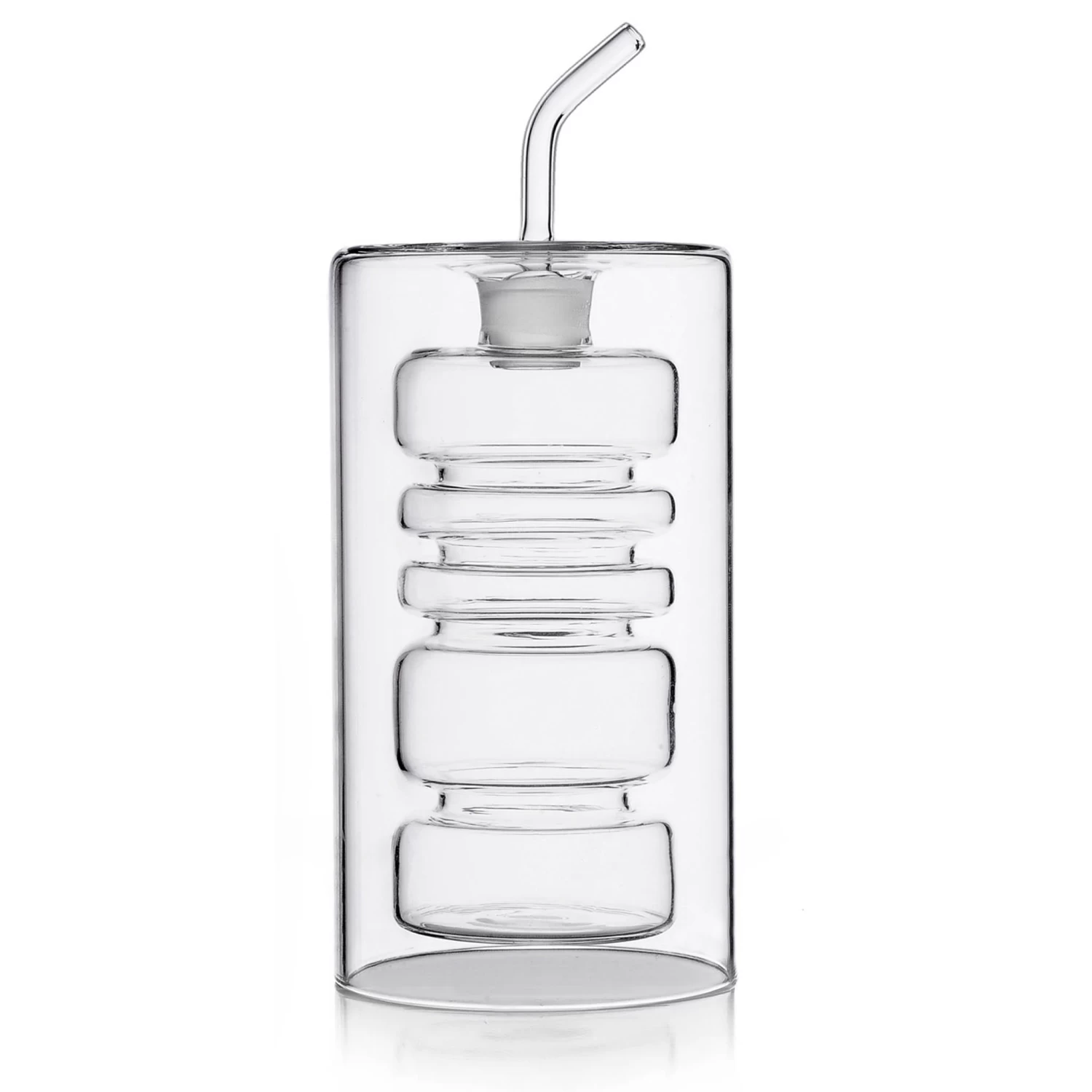 Ichendorf Milano’s large olive oil bottle elevates the way you pour oil. Crafted from 100% glass and made in Milan, this large bottle features a ring pattern, which, when filled with olive oil, creates a stunning design. With a narrow spout, this bottle is easy to pour from and is beautiful to have on show at all times.