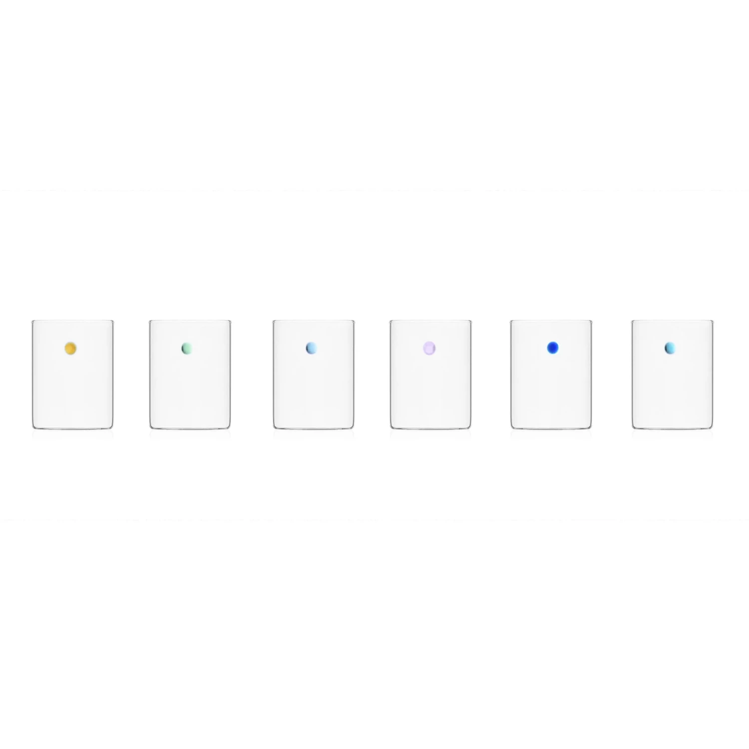 This set of 6 of Ichendorf Milano is a stunning glassware collection to serve water or wine in style. Each cylinder-shaped tumbler has a different coloured glass bead detail. Each of the 6 glasses features a unique iridescent colour, including amber, lilac and blue shades. These simple tumblers hold drinks in elegant style.Â
