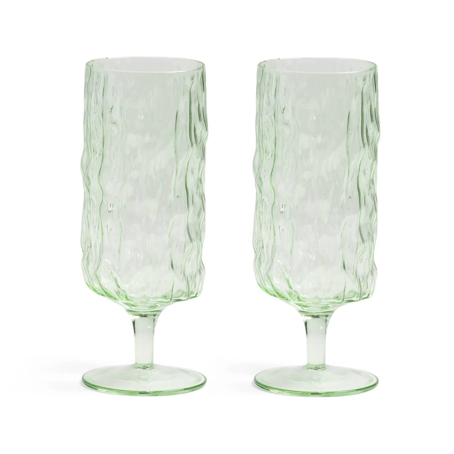 These green stemmed glasses are a stylish, durable and eye-catching addition to your glassware collection. We love their tall, trunk shape and the faceted glass which bounces light around the room. Take them out into the garden for an al fresco lunch or use them indoors to serve homemade lemonade, water or iced tea.
