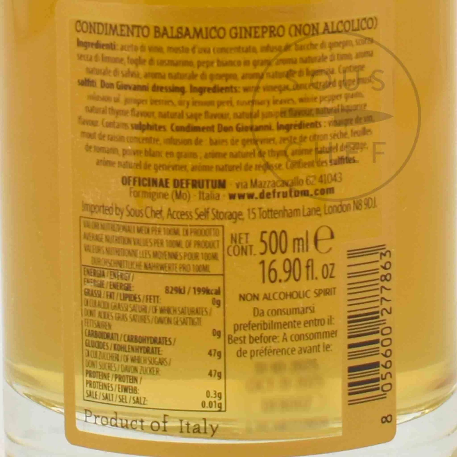 Ingredients: Concentrated grape must, wine vinegar, infusion of: juniper berries, dry lemon peel, dill fruits, white pepper grains; natural thyme flavour, natural sage flavour, natural juniper flavour, natural liquorice flavour. Contains sulfites.