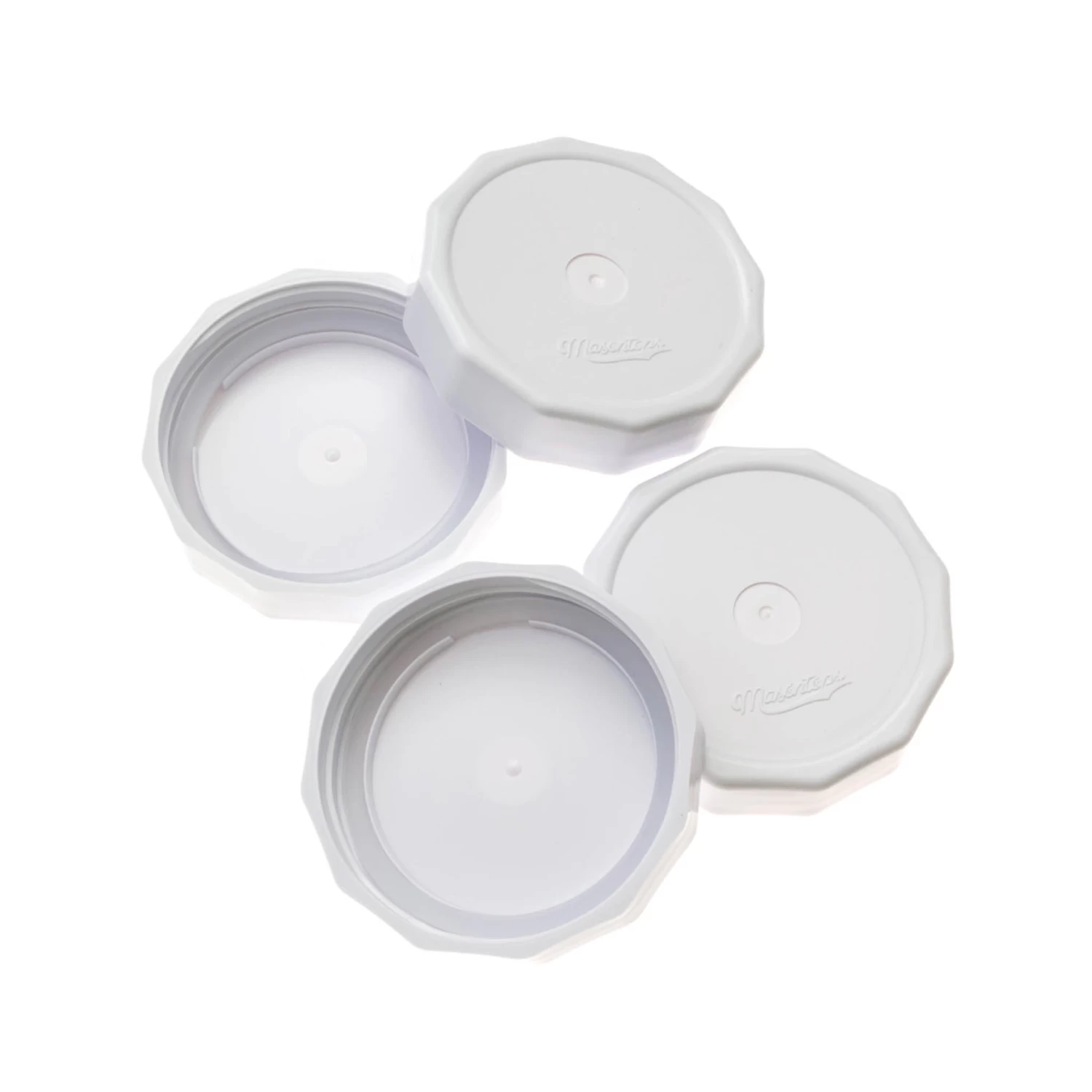 Masontop wide mouth tough tops are multi-purpose lids for storing food and liquids. Made from durable, food-safe plastic, the white lids are ideal for storing sauerkraut, pickles and kimchi. The tough tops create a leak-proof and airtight seal, so you can carry your fermented food on the go.