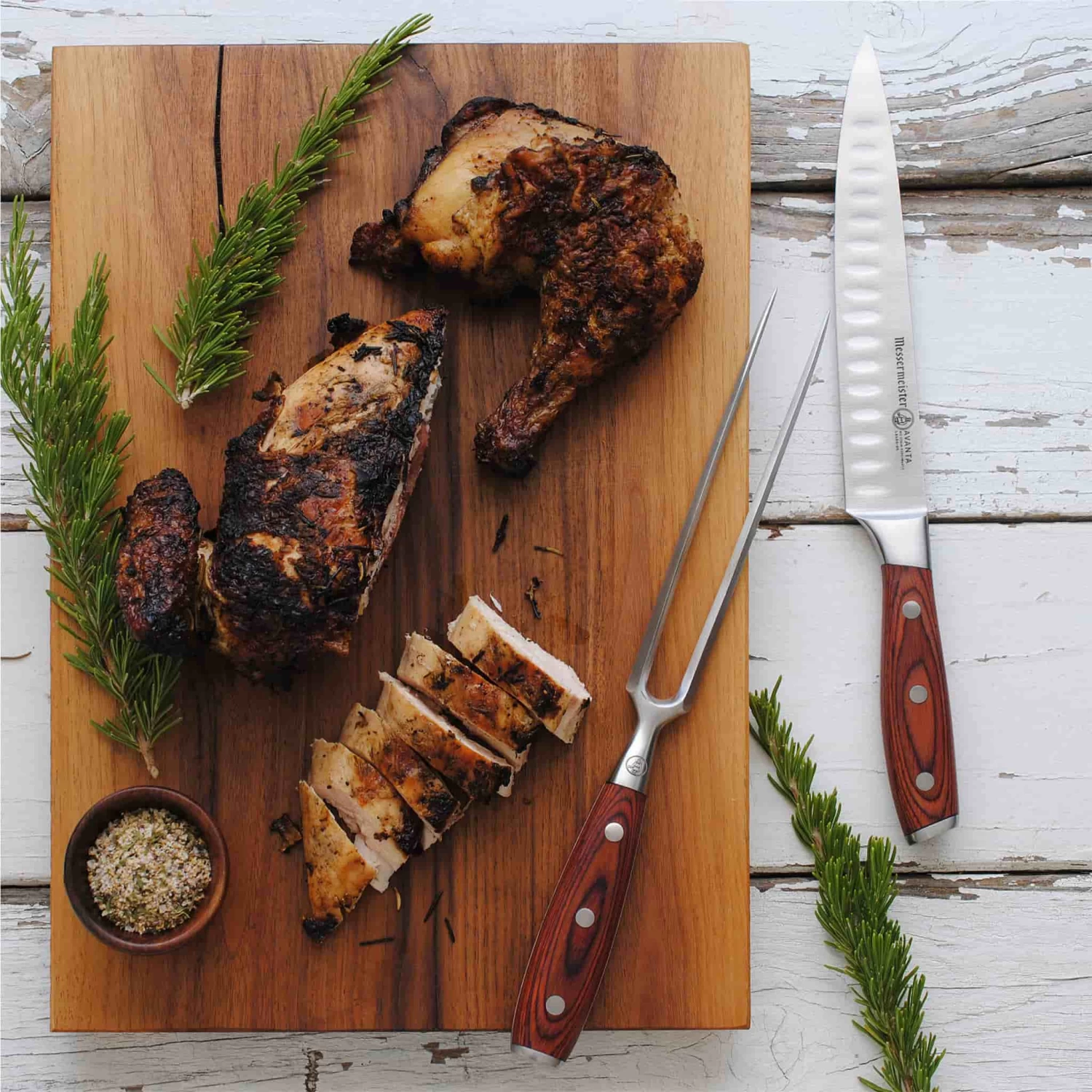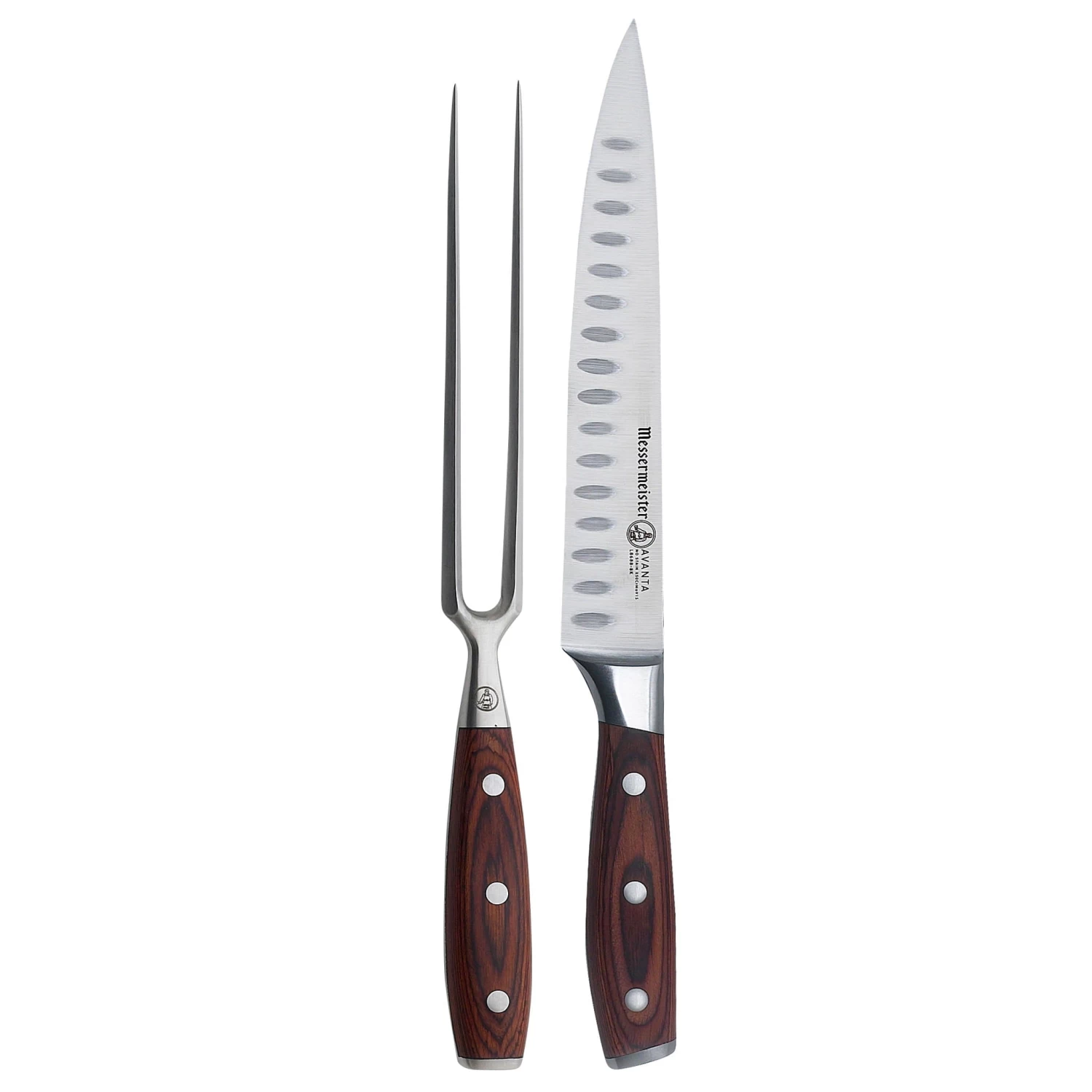 Use Messermeister’s Avanta Pakkawood carving set to carve roasted joints and BBQ meats cleanly and smoothly. This carving duo features a long slicing knife and double-pronged fork from Messermeister’s Avanta range, which is made from high-quality X50 German stainless steel.
