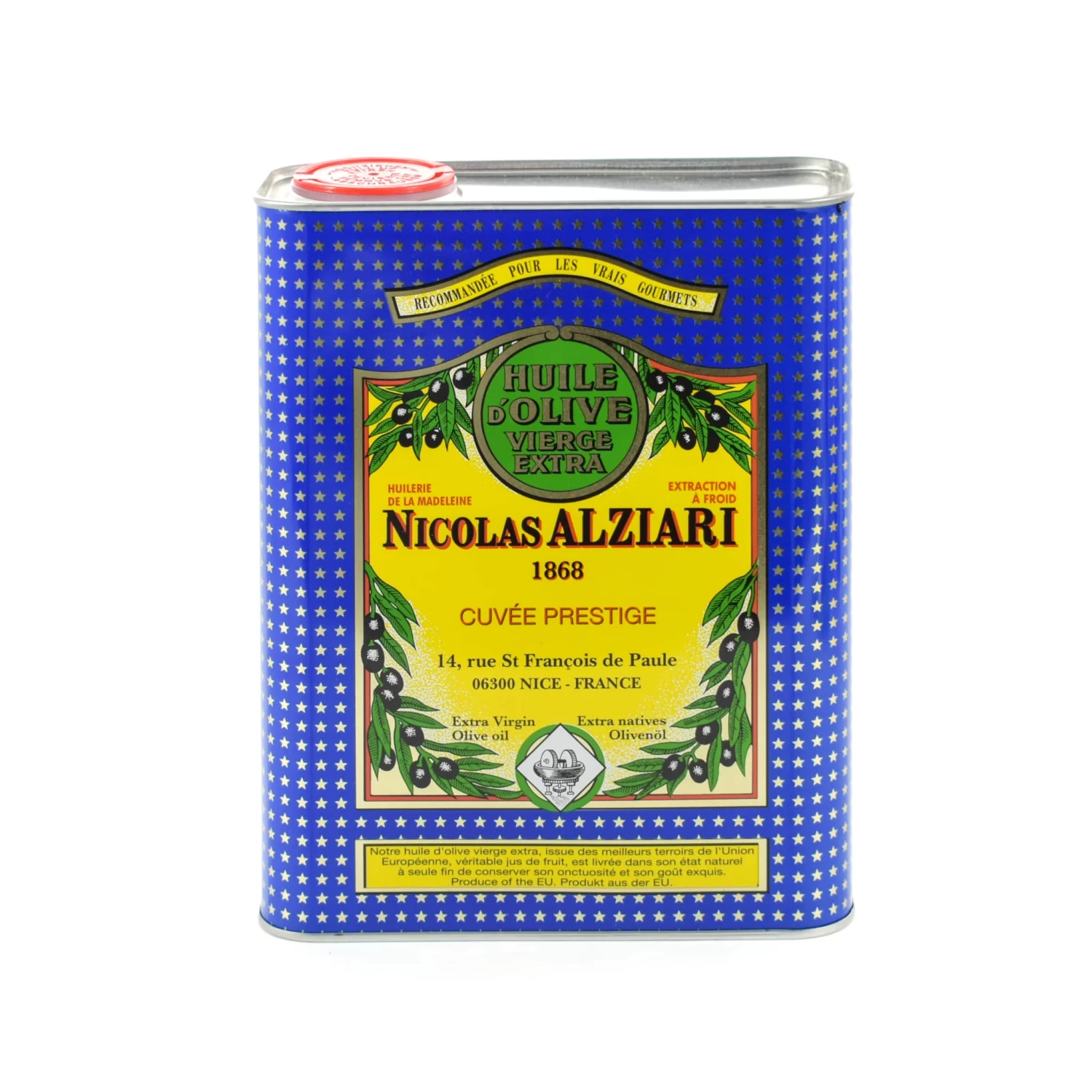 Nicolas Alziari fruity & soft, or Cuvée Prestige, olive oil is the extra virgin olive oil that made Alziari a household name in Provence. The olive oil is a blend of oils obtained from different European olive varieties, and the exact recipe is a closely-guarded secret over 100 years old!