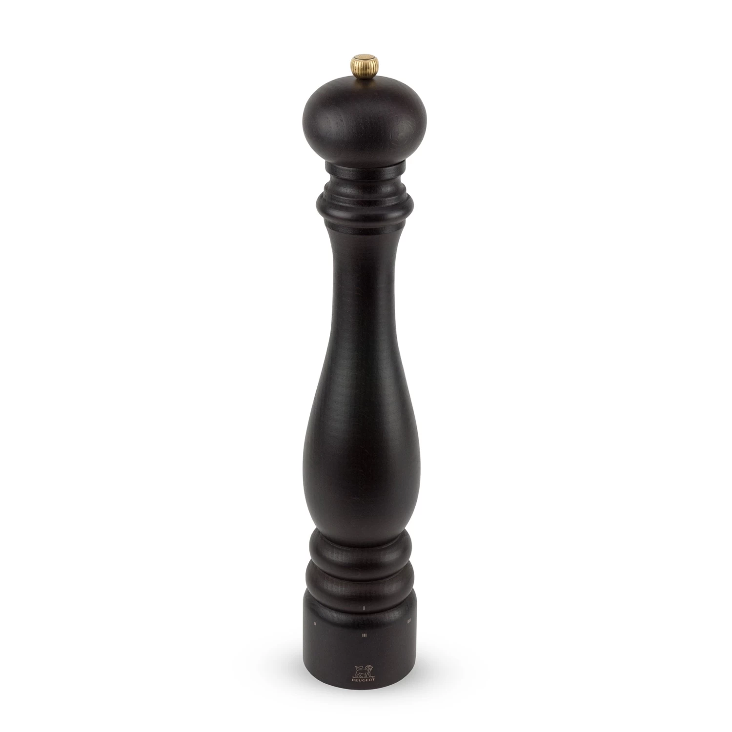 The Peugeot logo on top of the mill and the mechanism underneath will appear black to indicate that this is for pepper.