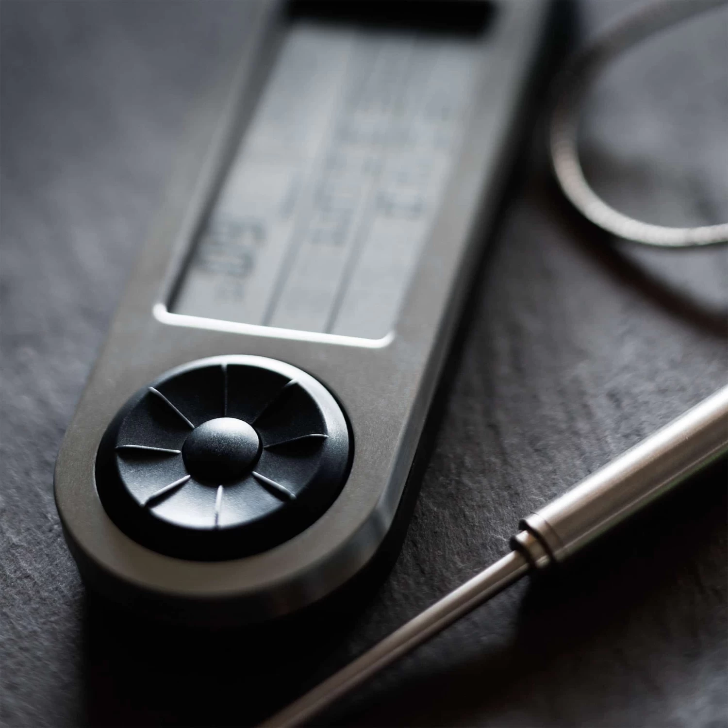 With an extra-long cable, you can leave the prong in the meat and set the screen to one side for ease of use. The display language is available in English, German and French.