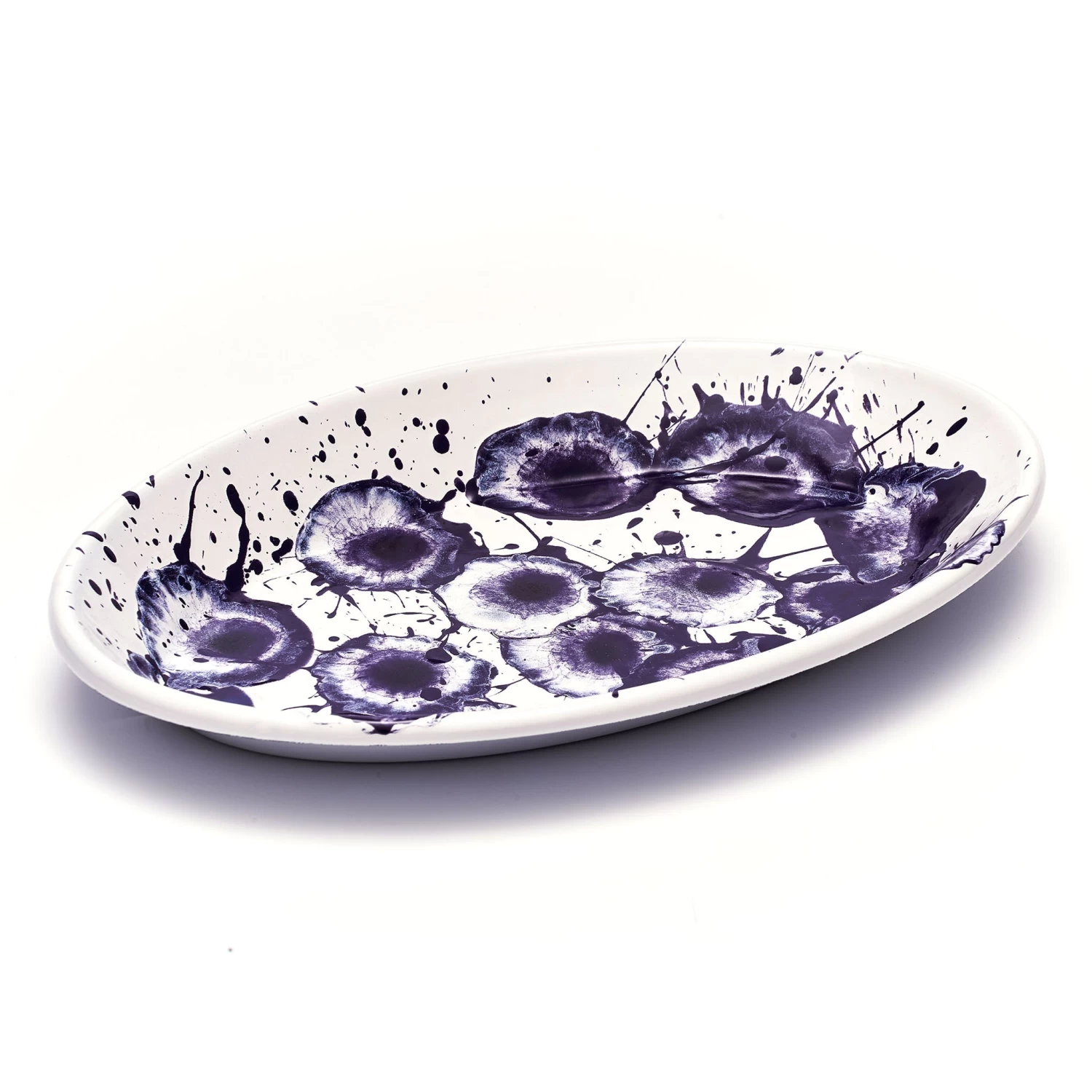 This Splatter Madness enamel oval serving plate in purple is a striking way of serving green leaf salads, slivers of charcuterie and fresh croissants. The white oval plate is decorated with a vibrant floral pattern – sure to add a pop of colour to every kitchen. We love using this plate as a way to serve sharing-style dishes – pile it high with food, place it in the centre of a table and let everyone tuck in!