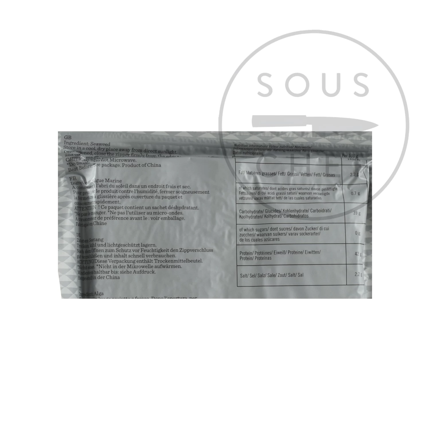 Ignredients: seaweed. Store in a cool, dry place.