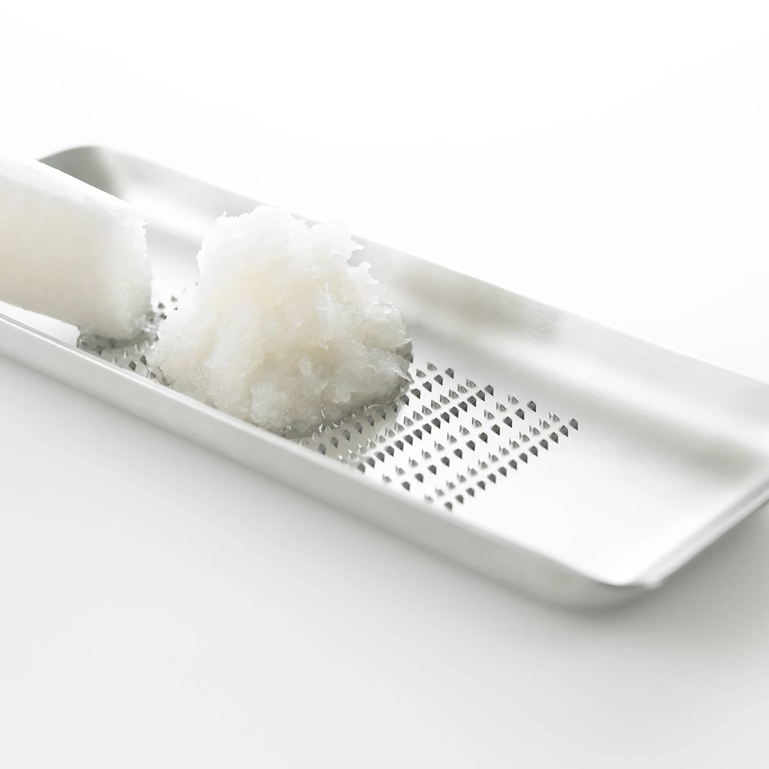 Use the Yukihara stainless steel wasabi grater to create your own pungent paste. This elegant stainless steel grater has firm teeth, making it effortless to grate wasabi, ginger and daikon radish. The curved shape of the tray collects all the fine shavings that you can use to garnish dishes or turn into dressings and pastes. With a little tilting action, you can drain the liquid from the tray and use this in your cooking, too. The large teeth prevent food from sticking to the grater, so it’s easy to clean after use.
